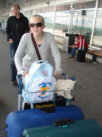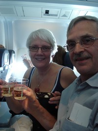 Champagne på Arlanda och sen champagne igen på planet. Firandet har redan börjat.