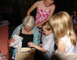 En mormor som njuter av sitt alldeles, alldeles speciella album, tillsammans med sina alldeles, alldeles speciella barn.